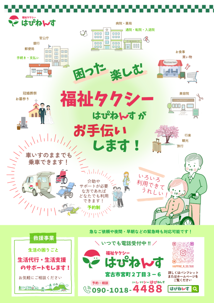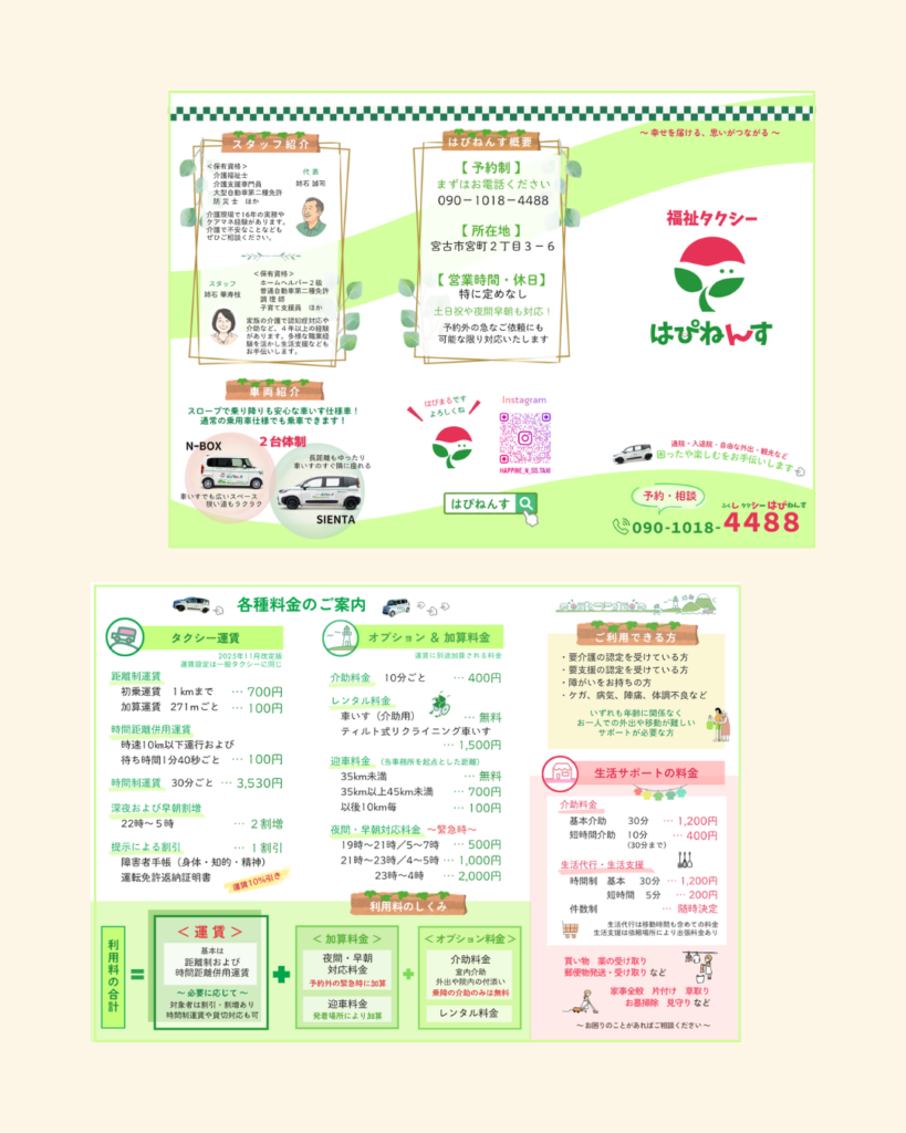 福祉タクシーはぴねんすのチラシが新しくなりしました!